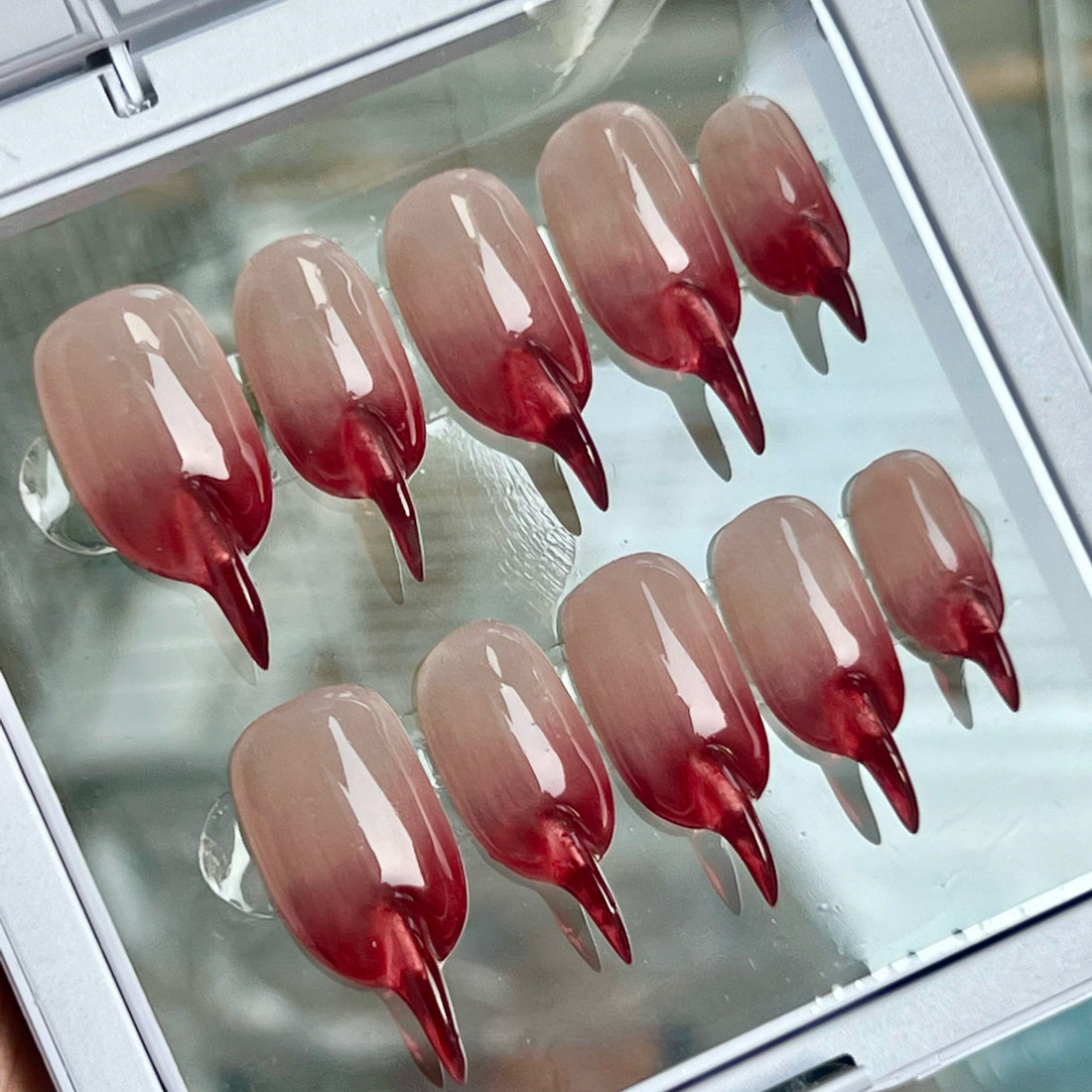 HexClaw | burgundy ombre nails,cat nails,acrylic nails,claw nails,press on nails,armor,claw,werewolf nails