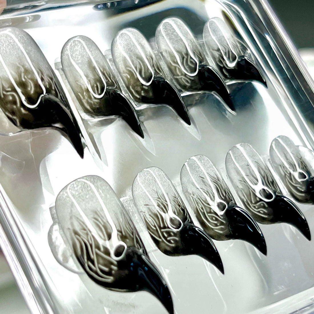 HexClaw | Black and White Ink Wash Nails,acrylic nails,claw nails,press on nails,armor,claw,werewolf nails,dragon nails,gothic nails,Y2K nails