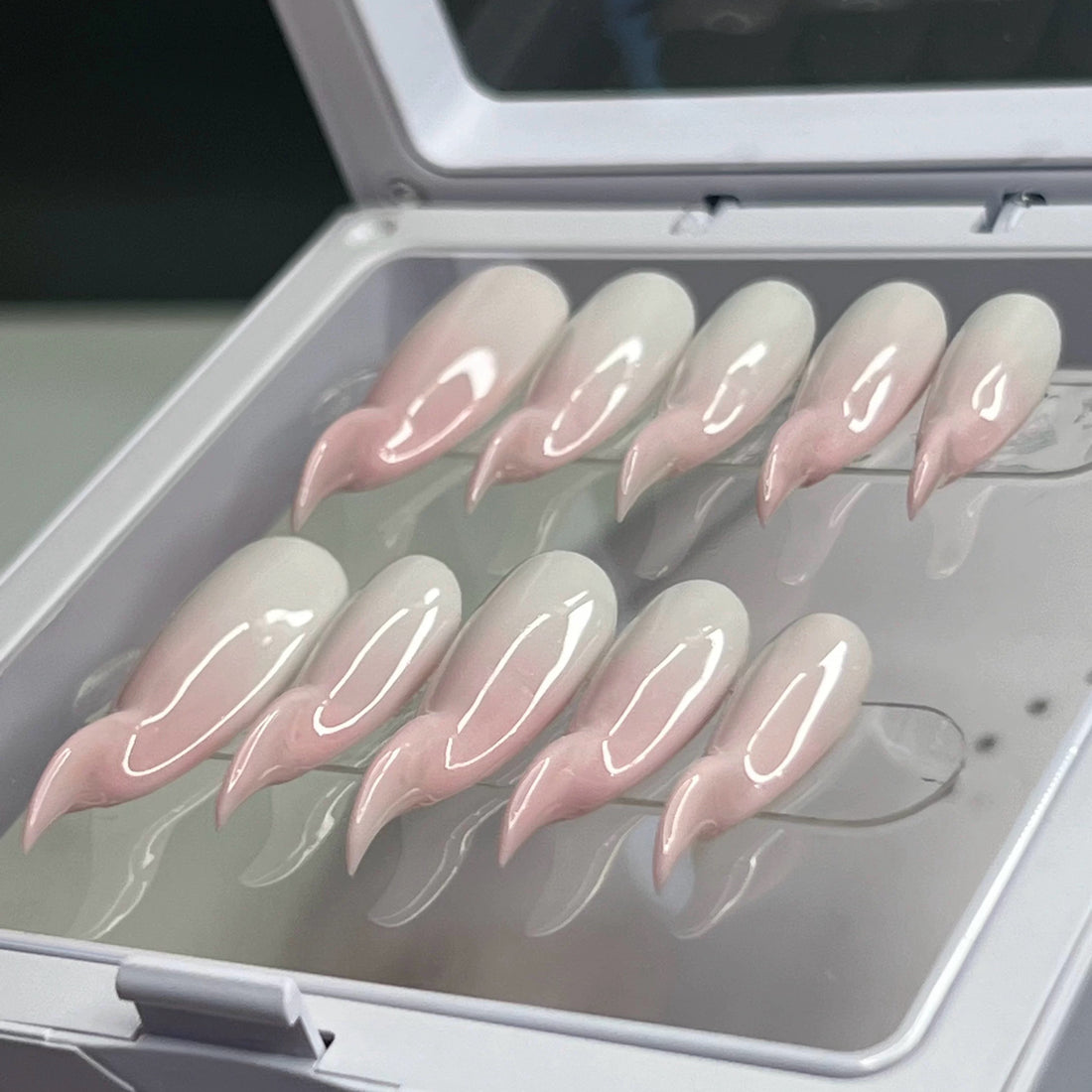 HexClaw | strawberry milk pink and white gradient nails,claw press on nails,acrylic press on nails,nails press on,armor,dragon nails,claw,werewolf nail,