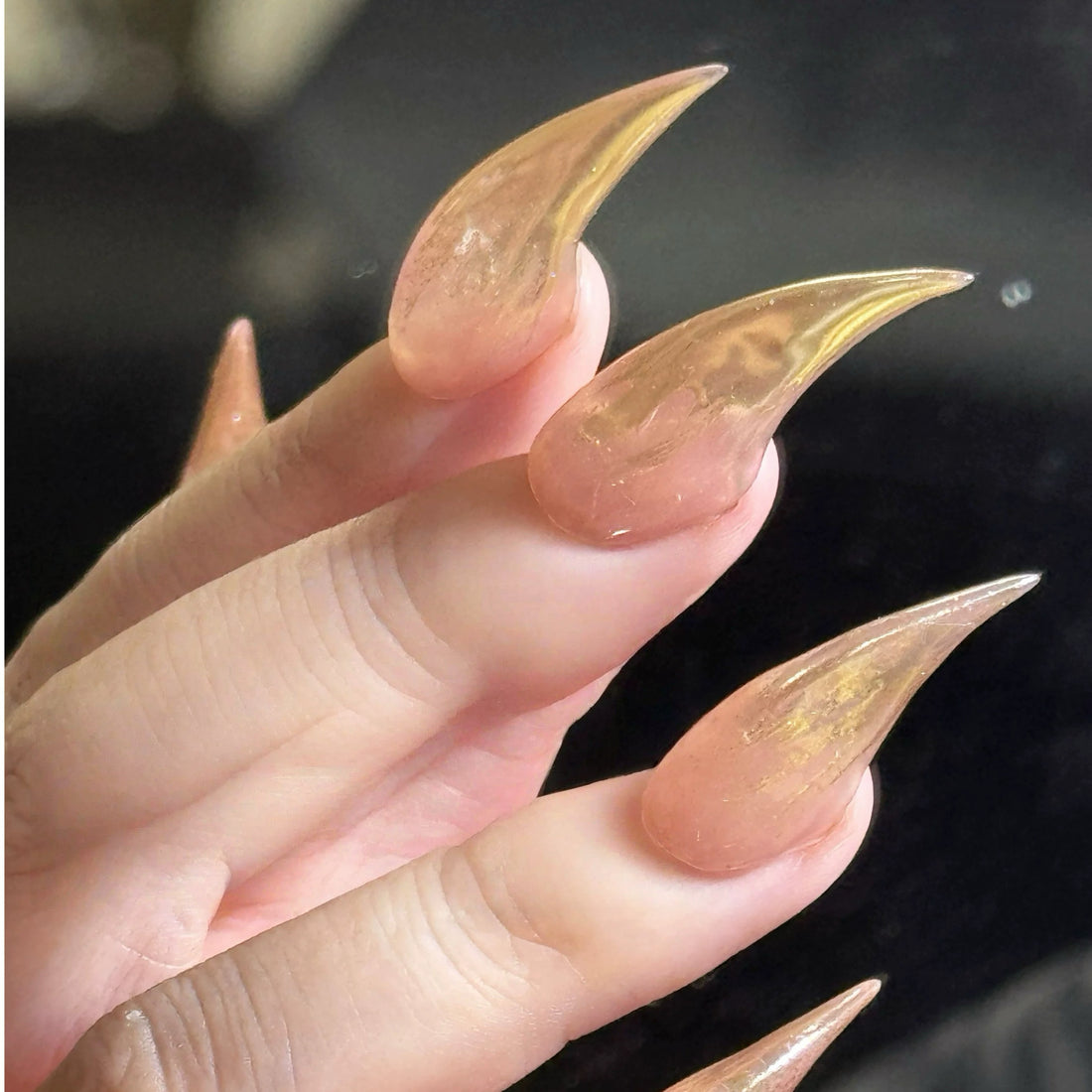 HexClaw | nude pink metallic champagne gold, werewolf nails,acrylic press on nails,claw press on nails,nails press on,armor,claw,dragon nails